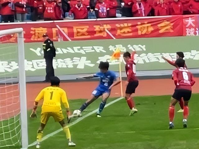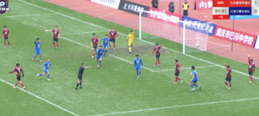 补时第2分钟,大渡口球员头球冲顶破门,但主裁判随即鸣哨判罚进球无效。从慢镜头来看,在大渡口球员下底横传时,球整体已经出界。