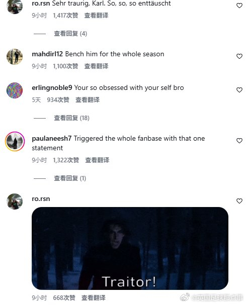 拜仁小将卡尔的社媒被自家球迷冲了