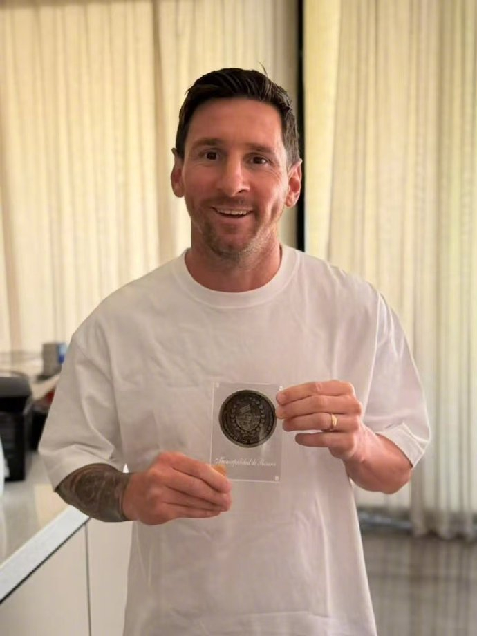 #梅西被家乡授予纪念奖章#阿根廷罗萨里奥市政府官方宣布:授予梅西“罗萨里奥建城三百周年纪念奖章”。“感谢你总是回到这座深爱着你的城市,感谢你成为罗萨里奥历史的一部分。