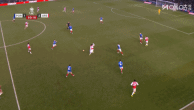 第51分钟,阿森纳前场任意球快发策动进攻,热苏斯右路得球,随后扫入禁区,后点马丁内利包抄破门,阿森纳3-1朴茨茅斯。↓