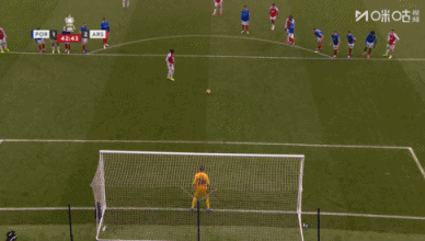 第43分钟,马杜埃凯主罚点球,这球他已经骗过门将,不过偏出了立柱。↓