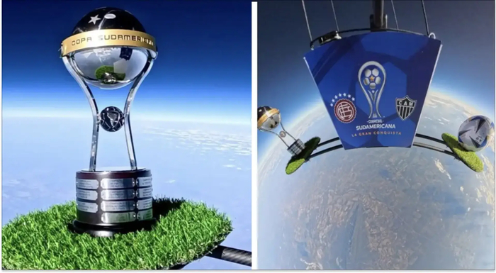 去年11月21日南美杯决赛前夕,南美足联将南美杯奖杯、比赛用球和印有决赛两队拉努斯、米涅罗竞技队徽的广告牌,用气象气球送上太空后再顺利回到地面。当时南美足联的营销文案是南美杯决赛的获胜者,将举起曾“遨游太空”的冠军奖杯。